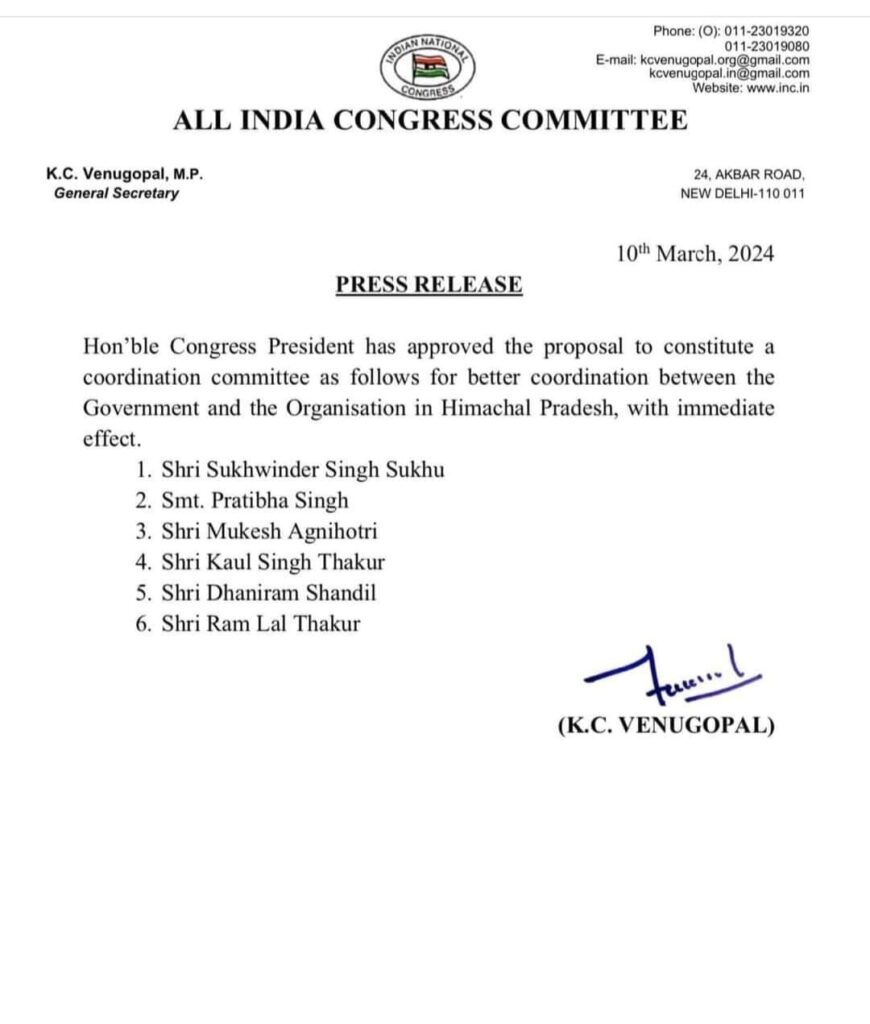 सरकार और संगठन के बीच समन्वय बनाने के लिए बनाई कोऑर्डिनेशन कमेटी के तीन अन्य नामों की घोषणा
