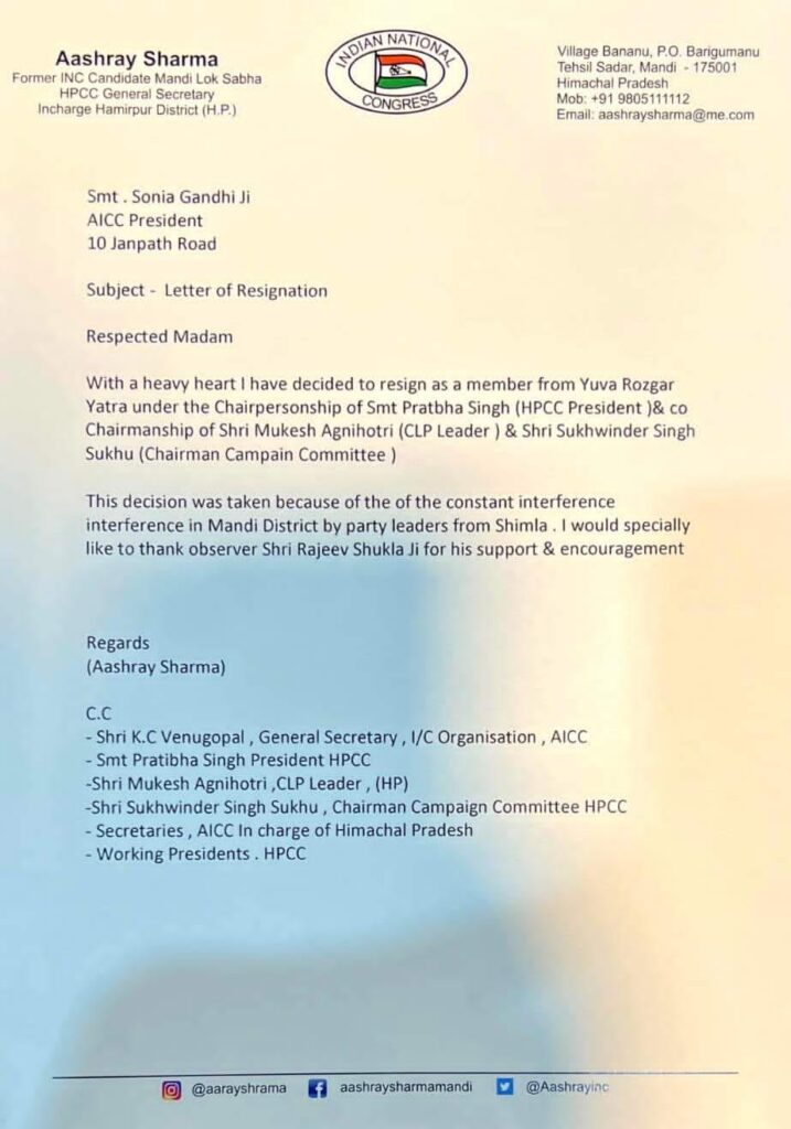 शिमला, सुरेंद्र राणा, हिमाचल प्रदेश कांग्रेस कमेटी महासचिव आश्रय शर्मा ने युवा रोजगार यात्रा से किनारा…