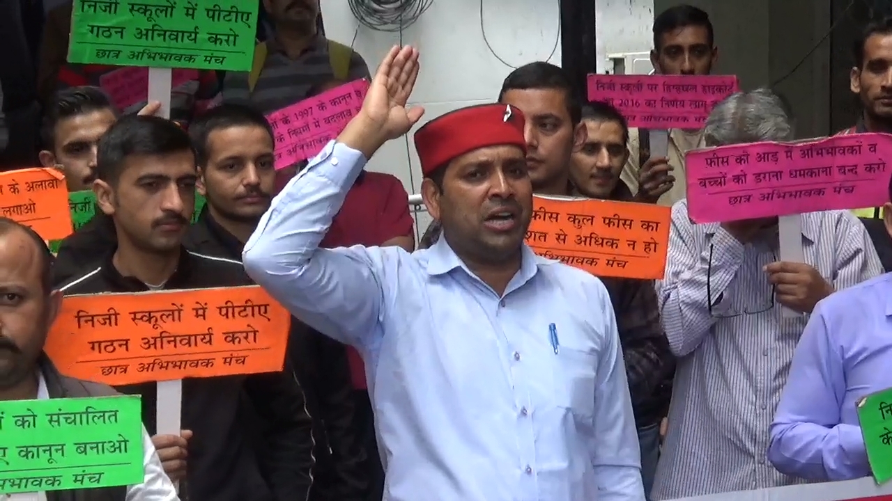 छात्र अभिभावक मंच ने शिक्षा निदेशालय के बाहर दिया धरना, उठाई क़ानून की मांग