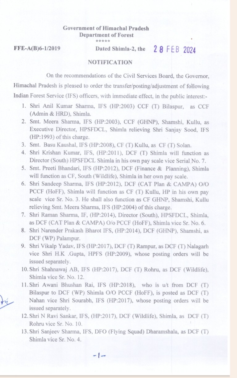 • सरकार ने बदले 14 IFS, अधिसूचना जारी.