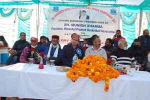 कांगड़ा(सुरेन्द्र राणा) कांगड़ा में आयोजित हिमाचल प्रदेश इंटर कॉलेज (महिला) बास्केटबॉल प्रतियोगिता का समापन हो गया है। प्रतियोगिता के समापन अवसर पर आज हिमाचल बास्केट बॉल एसोसिएशन के अध्यक्ष मुनीश शर्मा ने मुख्यतिथि के रूप में शिरकत की।