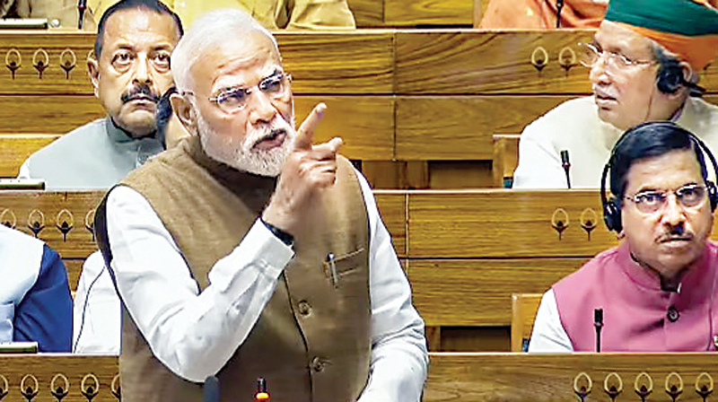 भारत की स्पष्ट नीति थी, सेना के साथ मिलकर तय की गई नीति थी कि उनके आकाओं का ठिकाना हमारा लक्ष्य है। पीएम मोदी ने कहा कि 10 मई को भारत ने ऑपरेशन सिंदूर के तहत हो रहे एक्शन को रोकने की घोषणा की, इसे लेकर यहां भांति-भांति की बातें की गईं। यह वही प्रोपेगेंडा है, जो सीमा पार से यहां फैलाया गया है।कुछ लोग सेना द्वारा दिए गए तथ्यों की जगह पाकिस्तान के झूठे प्रचार को आगे बढ़ाने में जुटे हुए थे, जबकि भारत का रूख हमेशा स्पष्ट रहा था। लोकसभा में नरेंद्र मोदी ने कहा कि अब पाकिस्तान भी भली-भांति जान गया है कि भारत का हर जवाब पहले से ज्यादा तगड़ा होता है। उसे यह भी पता है कि अगर भविष्य में नौबत आई, तो भारत आगे कुछ भी कर सकता है। इसलिए मैं फिर से लोकतंत्र के इस मंदिर में दोहराना चाहता हूं कि ऑपरेशन सिंदूर जारी है। उन्होंने आगे कहा कि पाकिस्तान ने दुस्साहस की अगर कल्पना की, तो उसे करारा जवाब दिया जाएगा। आज का भारत आत्मविश्वास से भरा हुआ है। आज का भारत आत्मनिर्भरता के मंत्र को लेकर पूरी शक्ति के साथ तेज गति से आगे बढ़ रहा है। देश देख रहा है कि भारत आत्मनिर्भर बनता जा रहा है, लेकिन देश यह भी देख रहा है कि एक तरफ तो भारत आत्मनिर्भरता की ओर आगे बढ़ रहा है, लेकिन कांग्रेस मुद्दों के लिए पाकिस्तान पर निर्भर होती जा रही है।