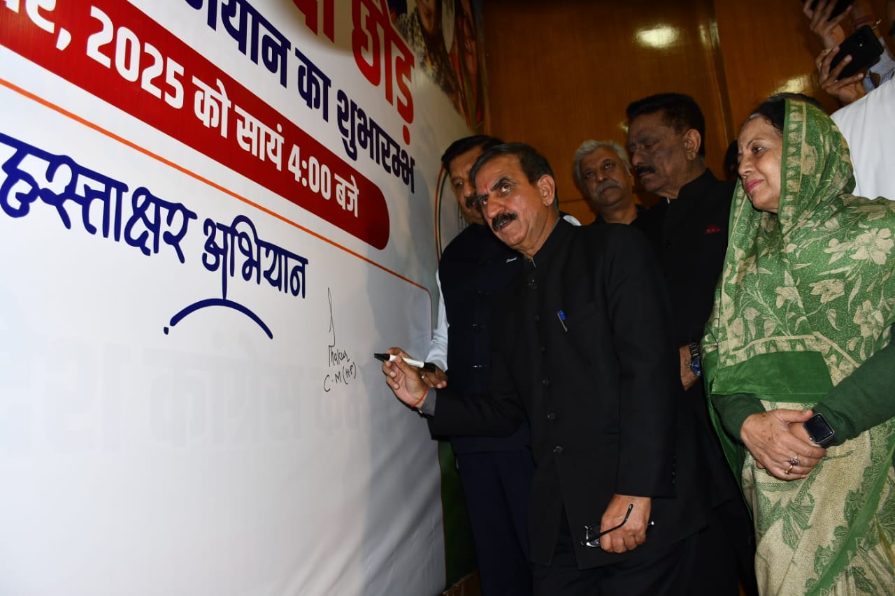 शिमला;सुरेन्द्र राणा- हिमाचल कांग्रेस ने शिमला में “वोट चोर, गद्दी छोड़” हस्ताक्षर अभियान की शुरुआत की। मुख्यमंत्री सुखविंदर सिंह सुक्खू ने हिमाचल कांग्रेस मुख्यालय राजीव भवन से अभियान की शुरुआत की। कांग्रेस ने राज्य के सभी जिलों से एक लाख हस्ताक्षर जुटाने का लक्ष्य रखा है। अभियान को लेकर हिमाचल कांग्रेस मुख्यालय राजीव भवन, शिमला में बैठक आयोजित की गई। बैठक में प्रदेश कांग्रेस अध्यक्ष प्रतिभा सिंह, अभियान के संयोजक उप-मुख्यमंत्री मुकेश अग्निहोत्री मौजूद रहे। हिमाचल कांग्रेस प्रभारी रजनी पाटिल ने वीडियो कॉन्फ्रेंसिंग के जरिए बैठक में हिस्सा लिया। बैठक में सह-प्रभारी विदित चौधरी और चेतन चौहान भी शामिल हुए।