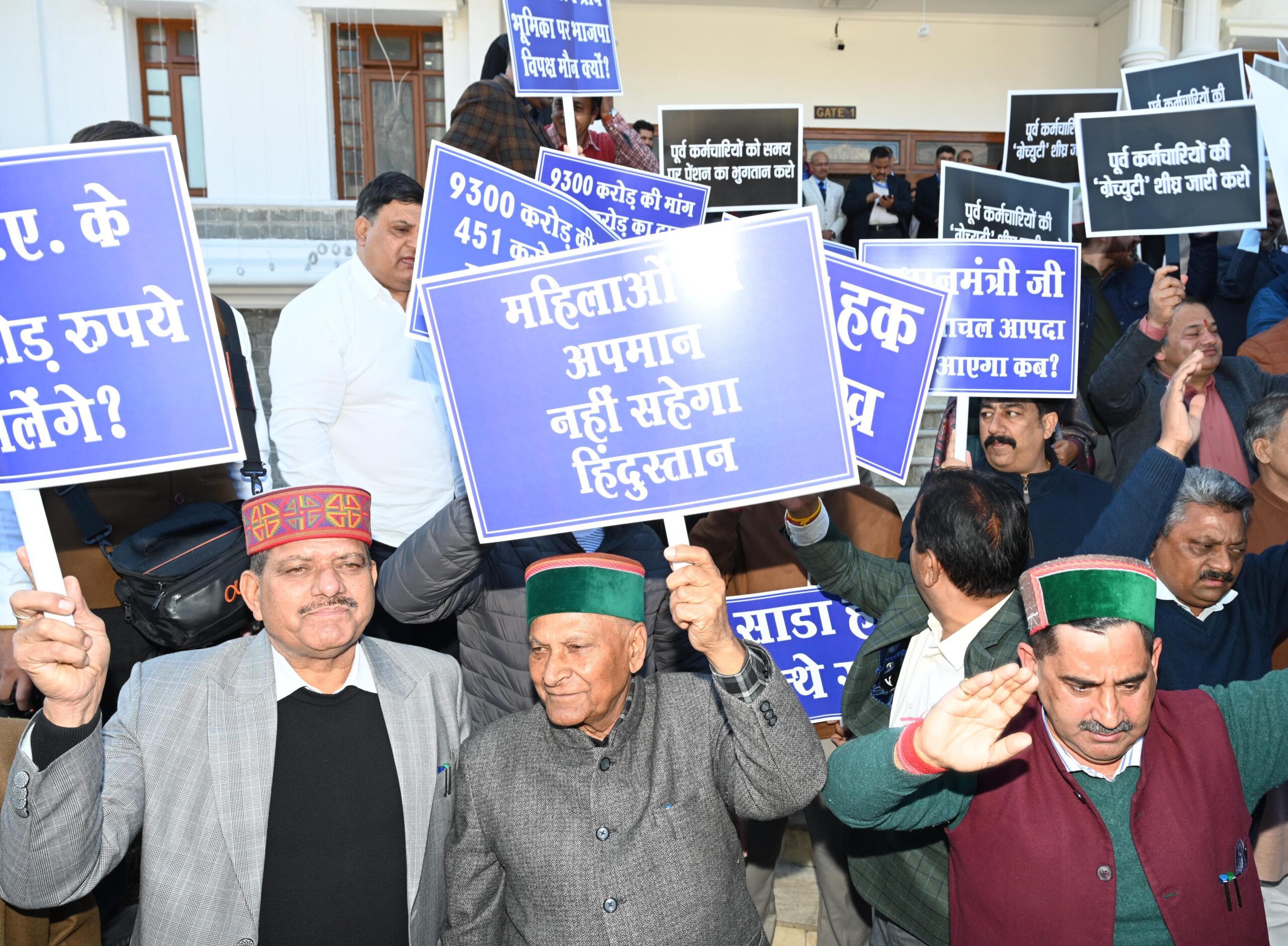 धर्मशाला, सुरेन्द्र राणा: हिमाचल प्रदेश विधानसभा विंटर सेशन के तीसरे की कार्यवाही शुरू होने से पहले भारतीय जनता पार्टी और कांग्रेस विधायकों ने विधानसभा के बाहर रोष रैली निकाली। भाजपा विधायकों ने हाथों में नारे लिखी तख्तियां लेकर प्रदर्शन किया और सरकार को कर्मचारी विरोधी बताया।कांग्रेस विधायक दल ने पीएम मोदी द्वारा घोषित 1500 करोड़ रुपए का पैकेज नहीं मिलने पर आक्रोश रैली निकाली। प्रधानमंत्री मोदी ने पौन दो महीने पहले हिमाचल आकर स्पेशल