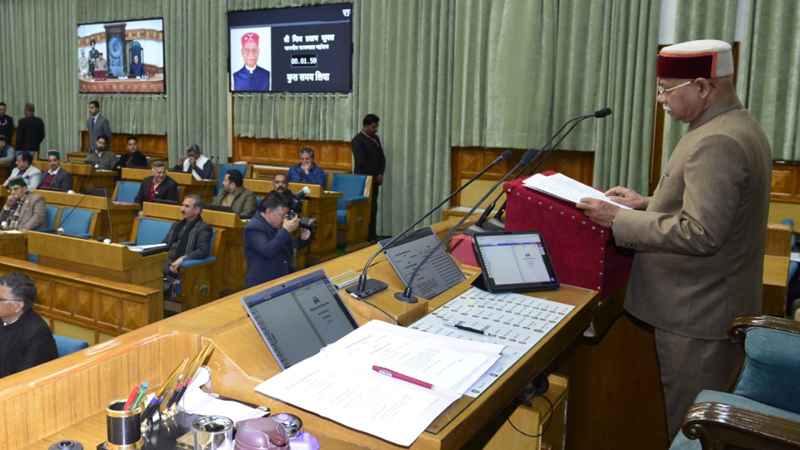शिमला, सुरेंद्र राणा: हिमाचल प्रदेश विधानसभा का बजट सेशन सोमवार दोपहर बाद 2 बजे से शुरू गया है। सेशन राज्यपाल शिव प्रताप शुक्ल के अभिभाषण के साथ शुरू हुआ। राज्यपाल का अभिभाषण दो मिनट एक सेकेंड में खत्म हो गया। राज्यपाल शिव प्रताप शुक्ल ने कहा कि उन्हें लगता है कि अभिभाषण में पैराग्राफ 3 से 16 तक सांविधानिक संस्थाओं पर टिप्पणी है। राज्यपाल ने पूरा अभिभाषण नहीं पढ़ा। उन्होंने कहा कि इन्हें पढ़ना मैं उचित नहीं समझता। उन्होंने कहा कि पैराग्राफ 17 से आगे सरकार की उपलब्धियां है, इन्हें सभी विधायकों को पढ़ना चाहिए। फिलहाल इसके बाद सदन की कार्यवाही को 2:45 बजे तक स्थगित किया गया गया है।दो बजकर 45 मिनट पर सदन की कार्यवाही शुरू हुई तो शोकोदगार प्रस्ताव रखा गया। सदन में सीएम सुखविंद्र सिंह सुक्खू और नेता प्रतिपक्ष जयराम ठाकुर ने कुमारसैन के पूर्व विधायक भगत राम चौहान के देहांत पर शोक जताया। सीएम सुक्खू ने कहा कि उनके निधन से हिमाचल प्रदेश को क्षति पहुंची है। जयराम ठाकुर ने भी कहा कि प्रदेश उनके योगदान को हमेशा याद रखा जाएगा। शिक्षा मंत्री रोहित ठाकुर ने कहा कि भगतराम चौहान का अपने विधानसभा क्षेत्र को आगे ले जाने में बड़ा योगदान रहा है। चौपाल के विधायक बलवीर वर्मा ने कहा कि भगत राम चौहान की जय बिहारी लाल खाची भी तारीफ करते थे, जबकि उनसे वह चुनाव हारे थे। लोक निर्माण मंत्री विक्रमादित्य सिंह ने कहा कि चुनाव के दौरान वह खुद भगत राम चौहान के घर उनका आशीर्वाद लेने गए थे। ठियोग के विधायक कुलदीप सिंह राठौर ने कहा कि वह बहुत भले आदमी थे। ईश्वर उनकी आत्मा को शांति दे।वहीं, मुख्यमंत्री सुखविंद्र सिंह सुक्खू को 16 फरवरी 2026 को शिमला में विधानसभा में हिमाचल प्रदेश पुलिस द्वारा गार्ड ऑफ ऑनर दिया गया है। वहीं, मुख्यमंत्री सुखविंद्र सिंह सुक्खू का विधानसभा बजट सत्र के उद्घाटन के दिन विधानसभा शिमला में स्वागत किया गया। वहीं, हिमाचल प्रदेश विधानसभा में सर्वदलीय बैठक हुई। बजट सत्र निर्विघ्न और सुचारू रूप से चल सके, इसके लिए हिमाचल विधानसभा अध्यक्ष कुलदीप सिंह पठानिया की अध्यक्षता में दोपहर 12:15 बजे सर्वदलीय बैठक बुलाई गई थी। सर्वदलीय बैठक समाप्त होने के बाद मीडिया को संबोधित करते हुए मुख्यमंत्री सुखविंद्र सिंह सुक्खू ने विपक्ष पर जमकर हमला बोला। मुख्यमंत्री ने कहा कि आरडीजी पर राजनीति नहीं होनी चाहिए। आरडीजी युवाओं के रोजगार, गरीब लोगों और किसानों की लड़ाई है। यह सरकार की लड़ाई नहीं है। जो कहना है मेरे खिलाफ कहते रहें, लेकिन आरडीजी पर राजनीति न हो।इसके साथ नेता प्रतिपक्ष जयराम ठाकुर ने बजट सत्र पर निशाना साधा। उन्होंने कहा कि असमंजस की स्थिति है। अगर ये बजट सत्र है तो बजट कब पेश होगा। वहीं, हिमाचल प