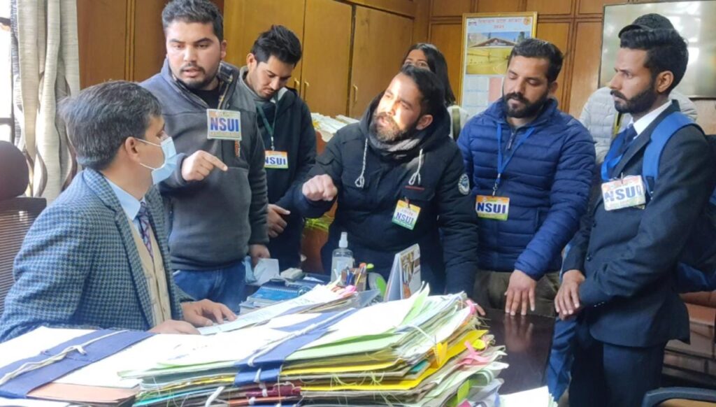 विवि शिक्षक व गैर-शिक्षकों की नियुक्तियों को पुनः विज्ञापित करने पर अड़ी एनएसयूआई